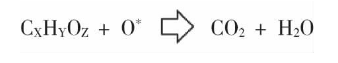 反應(yīng)過程主要有兩種:第一種化學(xué)反應(yīng),將壓縮空氣電離后獲得大量氧等離子體;氧等離子體與有機(jī)物作用,把有機(jī)物(CXHYOZ)分解成二氧化碳和水,如圖2所示。第二種是物理反應(yīng),壓縮空氣電離成等離子體后,等離子體內(nèi)的高能粒子以高能量、高速度轟擊涂膠面表面,使分子分解。